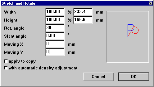 The multiple using of the density adjustment by distortion of the box or changing the parameter should be avoided. The reason is that technical caused rounding errors are cumulated and the design is destroyed. We recommend in any case to position the design and choose the correct size without density adjustment and after that switch on the density adjustment and use it once. All modifications of the module or design are stored in the parameter, there is no need to keep them in mind.