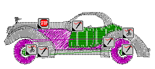 The corresponding stitch can be found exactly under the lower left corner of the symbol and can be selected easily in an appropriate zoom-level, for example to delete a machine function.