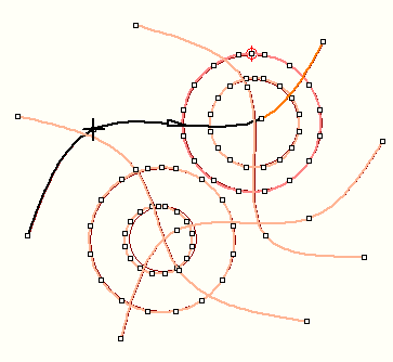 Beginning with version 6 there is no need that the branches are connected with the main line. So it is possible to punch several lines as one automatic, clicking the branch-button before every new line. Start- and endpoint of all the lines can be set or may be moved to any point. Optimum order is calculated automatically Of course some lines have to be run through more than once. Stitch effects you might have defined, like E-Stich or swing are done in the last run solely.