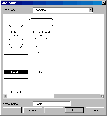The finished frame can be stored with the function save borderBML344 in the desired border-directory.