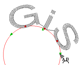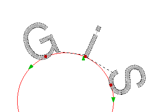 If there will be undesired gaps within the text, you can click to each letter at its red active point and move it along the curve. If you press the CTRL-Key simultaneously, the letter itself and all following ones are moved. This is very useful if there are gaps in front of a character.