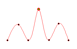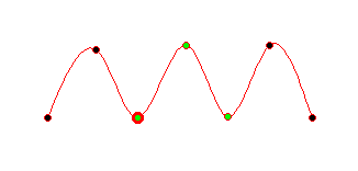 You can also set several points on a line to be active. This is done by clicking on them holding the Shift-key pressed or by dragging a box with the desired points inside. Of course you can set all points of a curve to be active in this way. If you hold one active point with the mouse and move it, the whole active part of the curve is changing