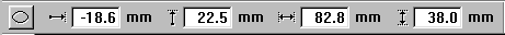 In the parameter bar on top the coordinates of the center point and the maximum length and width of the ellipse are displayed. By clicking and overwriting you can input the position and size of the ellipse numerically. Altering the parameter takes effect after the confirmation with return.