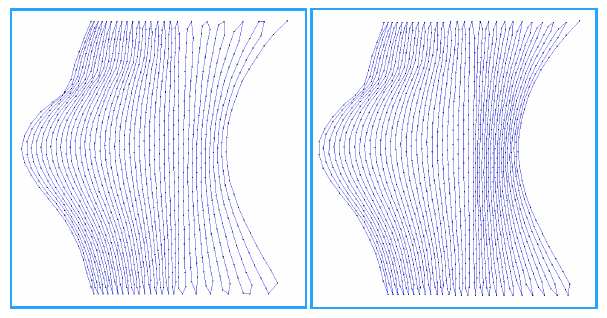 There is a second way of calculating the distance compensation on wavy stepp. The defined distance is either taken on the middle of the automatic. This is the way it was in the past and is done with the setting on centerline.( left picture)