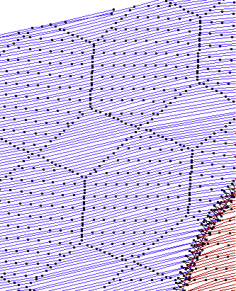 • Changing the direction of the steppstitches by entering a stitchdirection line4MI2T3 with a straight line, one curved line or several curved lines (between 2 adjacent stitch direction lines a morphing algorithm will be used)