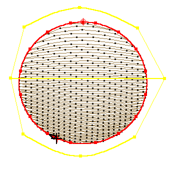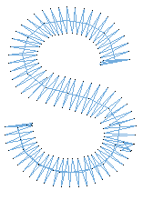 Automatics which are input using the outside contour input method can also have more than one distance value. You can input a new value with every new stitch direction line. The distance alters smoothly from one value to the other.