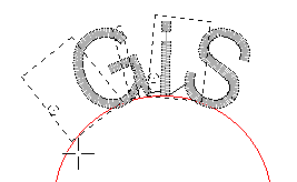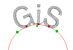 The text module on the curve has got two green quadratic active points and an arrow in the middle, with which the text can be moved along the curve by clicking and pulling.