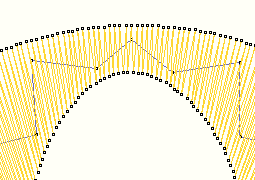 The Stitch length parameter specifies the maximum and minimum lengths of the running stitches. This is automatically reduced in curves in order to keep the distance to the contour as accurate as possible.